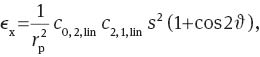 Because the dependence on the radial field variable s is proportional to s2, the field dependencies can be expressed in terms of Zernike polynomials Z0,1,c(s), Z0,2,c(s) and Z2, 1, c(s, ϑ) for ϵx and Z2,1,s(s, ϑ) for ϵy.