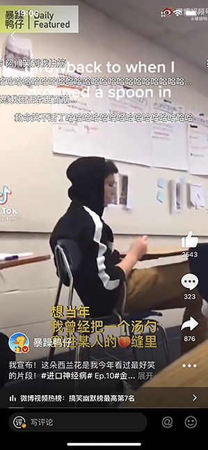 The research participant @暴躁鸭仔 is a subtitling-cum-editing video blogger on Weibo with 120 thousand followers.2 Registering her Weibo account in 2018, she joined the ranks of subtitled video authors in early 2021. Out of a total of 109 video postings in her microblog page (as of December 15, 2021), 104 fall into the category of subtitled audiovisual products, and 95 are posted under #Golden Subtitling# hashtag. In the monthly-released list of quality subtitling bloggers (began in January 2021), her name appeared on the list of March, August, and September, recognized with the New Blogger Award. The general process of her subtitled video production covers collecting original materials on Tiktok, editing video clips based on topic, and composing subtitles, all completed on her own. Her subtitling practices constantly involve the innovative use of not only linguistic codes but other semiotic and modal resources. Altogether, @暴躁鸭仔 is a logical candidate for research participation on the grounds of her identity as a typical subtitling blogger and output of a high traffic of postings for data collection and analysis.