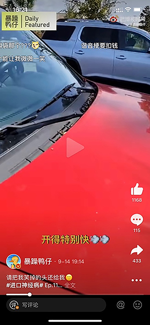 are presented at the end of the Chinese subtitle text to magnify the very act of “driving fast” delivered through the original video. Moreover, Figure 5 illustrates the function of emoji to highlight emotional states as the face streaming in fear