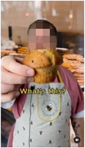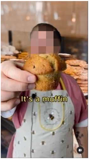 00:02 It’s a muffin It’s a muffin. Mellow accordion music in the background Close up shot Directly looking at the camera