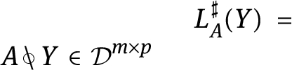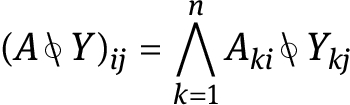 For aD, mapping La:DD, xax, is residuated; its residual is denoted by (“left division by a”). More generally, for ADn×m, mapping LA:Dm×pDn×p, XAX, is residuated; can be computed as follows: for all 1im and 1jp,