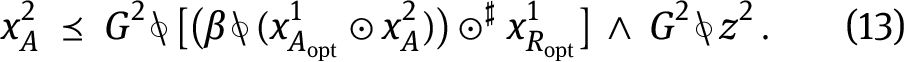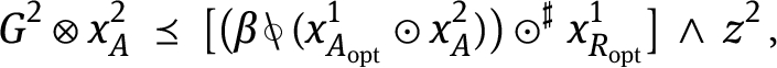 We now proceed to update xA2. We have HA2=xAopt1, HR2=xRopt1, LA2=rT(xAopt3)=eδ241δ+, and LR2=G3rT(xAopt3)=eδ261δ+. Moreover, rT(xAopt2)=eδ27εδ+. We then verify that F2=, so we look for the least z2z2 such that Fz22. According to Proposition 27, we obtain z2=eδ391δ502δ613δ+. Computing the greatest fixed point of Γz22 then yields xAopt2=eδ291δ362δ563δ+(=uopt2) and xRopt2=eδ341δ412δ613δ+(=yopt2). Notice that xAopt2xAopt2 even though z2=z2 (cf. Remark 24).