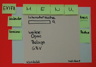 Dementsprechend war entschieden worden, den Aus- und Umbau von EVIFA als ein zentrales Modul in den FID-Antrag aufzunehmen, Mittel für eine IT-Kraft und für Webdesign zu beantragen, aber auch vorab gemeinsam mit Usability-Expertinnen und -Experten und unter fachlichen Gesichtspunkten Ideen für eine Reorganisation der Seite zu entwickeln.