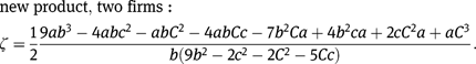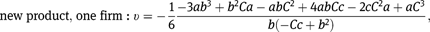 As noted above, the empirically relevant setting is and , corresponding to the second line of inequality [33]. In this case, the new-product price is higher when the monopoly sells to two firms rather than to one firm, if and only if is not greater than .