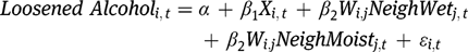 slightly differently in implementing PSM. Here, they are given a one only for local option counties in the year of the local option election and zero otherwise. Given the observed spatial dependence in alcohol polices, we include indicators for neighboring county’s alcohol status by