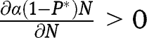 The right-hand side in eq. [15] is always positive. The left-hand side must also be positive for this condition to hold given an appropriate value for N. Next, notice that when , the left-hand side in eq. [15] equals . This is always negative for any . Furthermore, the left-hand side in eq. [15] decreases with a lower . It follows that when , it becomes increasingly negative. In conclusion, eq. [15] can only hold with .