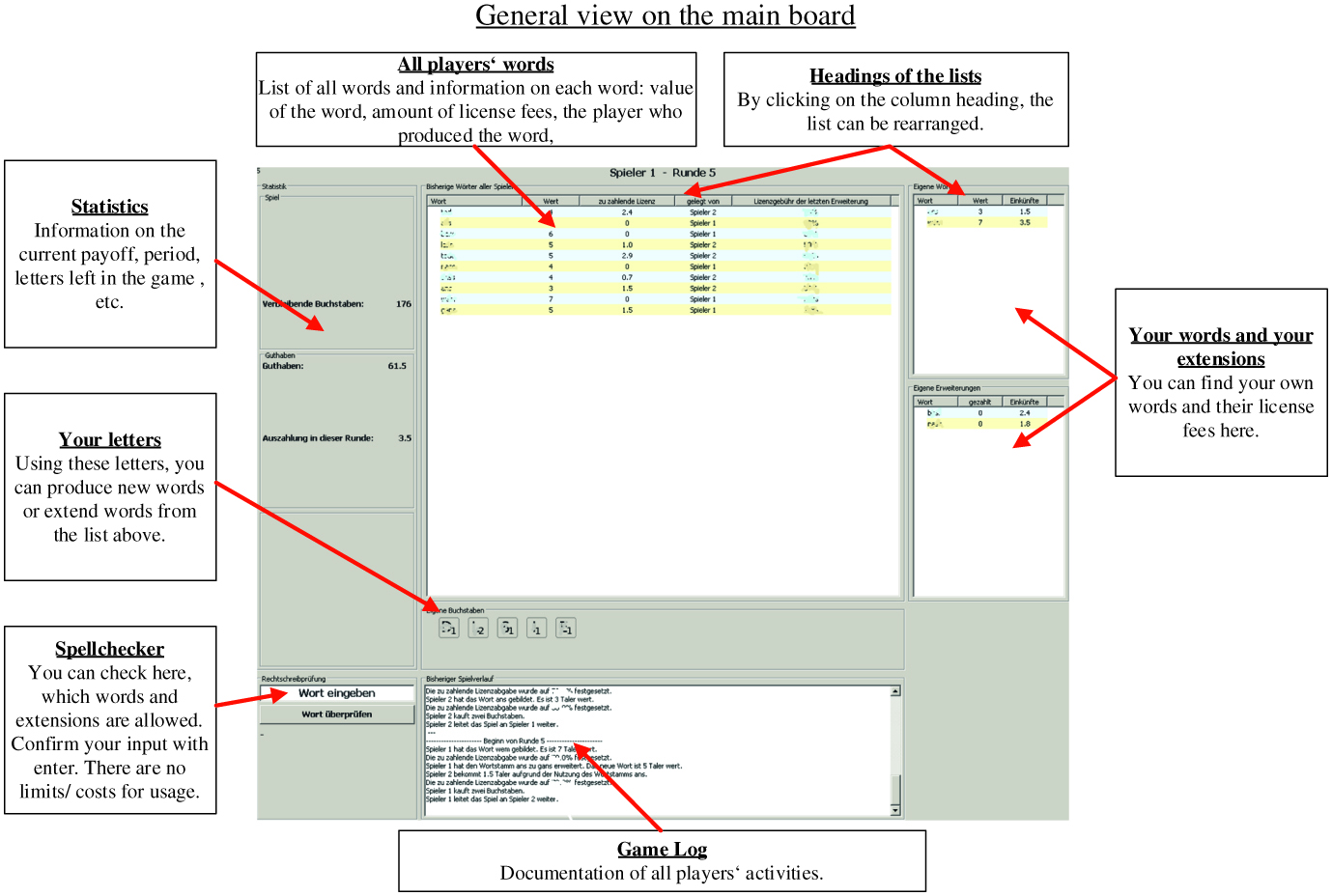 On the next page, you will find a screenshot of the main board of the game and some explanations to gain a first overview of the game. A detailed explanation of the game ensues.