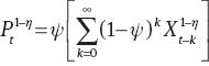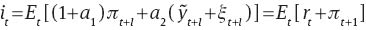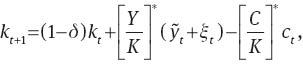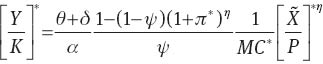 Let X1=[k, c, r, π, z, ξ]′ and X2=[y, l, w, mc]′.