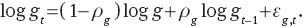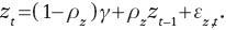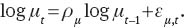 where the growth rate of neutral technology factor At, defined by zt≡ΔlogAt, follows an AR(1) process: