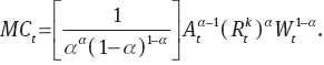 Given the production technology, cost minimization problem results in the following marginal cost function: