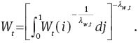Since the household has only 1–ξw of probability to optimize wage rate in each period, the non-optimizing household would index wage rate according to: