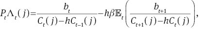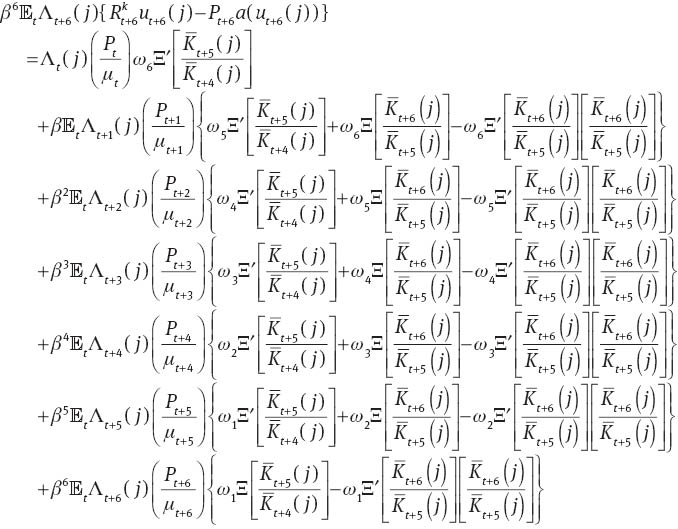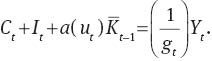 The household’s first order conditions with respect to consumption, government bond, investment, capital stock, and capital utilization are: