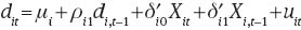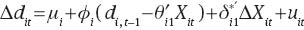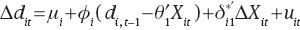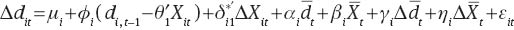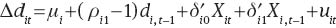Using dit=di, t–1+Δdit, (1) can be written as:
