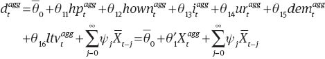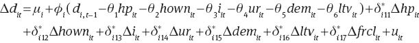 We assume that the foreclosure rate affects debt only in the short run but not in the long run (i.e., θ17=0), so (5) can be written in its extended form as:
