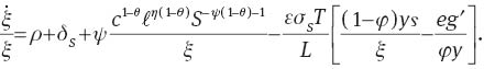 where Δ=δS[βθx*(ℓ*+L*)–εℓ*ϑ]/Θ<0, ϑ=(1–θ)δk+ρ and Φ=(1–β)g′. On the other hand, the comparative statics concerning public abatement are given by: