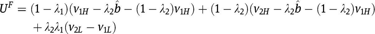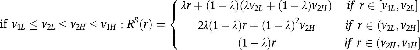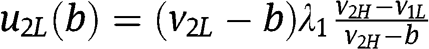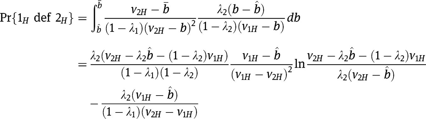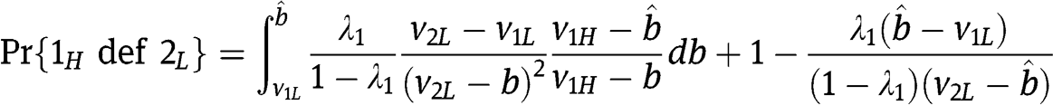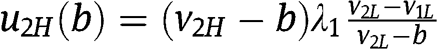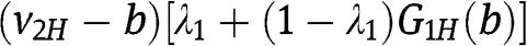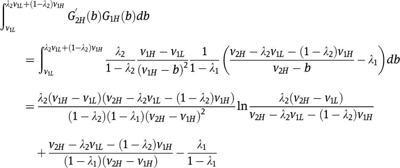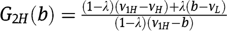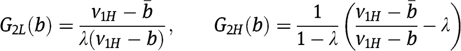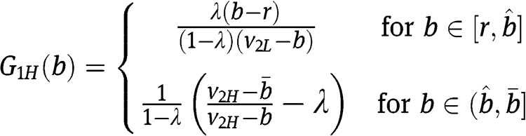and his probability to win – respectively – as a function of his bid b, given the strategies of the two types of the other bidder. Notice that