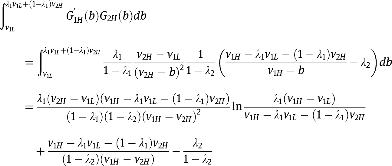 in eq. [8] and we verify that for each type of each bidder the strategy specified by Proposition 1(iii) is a best reply given the strategies of the two types of the other bidder. Let