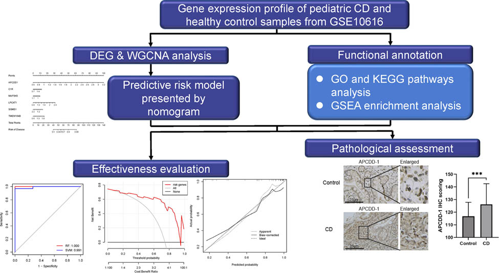 The pediatric CD is an increasing global health problem with rising rates in China over the last 20 years due to risk factors, such as the adoption of a Westernized diet and industrial environments. Early diagnosis of pediatric CD is likely to shorten the course of therapy and improve prognosis, but existing diagnostic methods rely on judgment of symptoms, laboratory findings and imaging features. Patients have often entered the chronic and recurring inflammation stage prior to diagnosis to the detriment of treatment [25], illustrating the need for complementary diagnostic tools and early screening tools.
