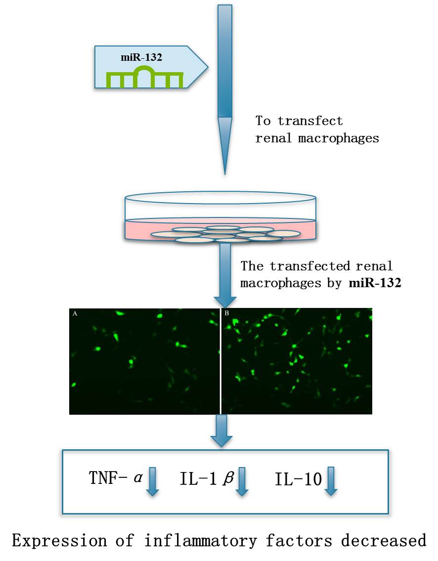 Experimental study on the regulation of the cholinergic pathway in renal macrophages by microRNA-132 to alleviate inflammatory response