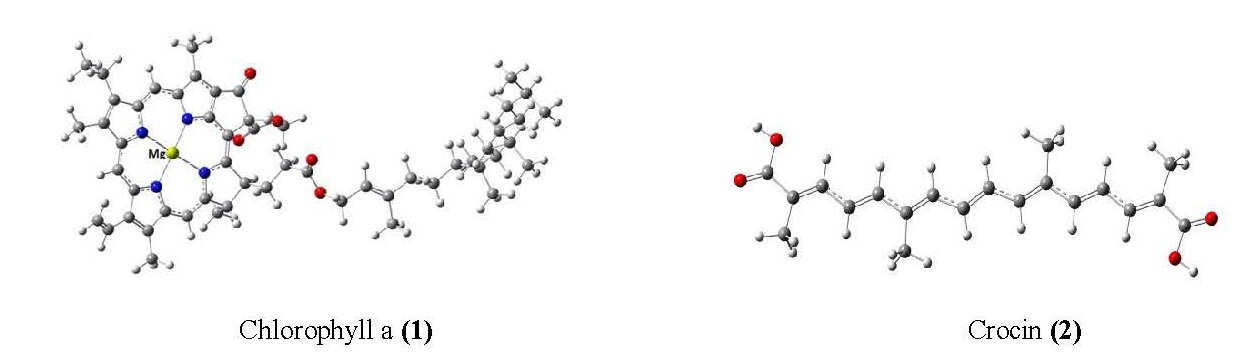 Chemical structures of Chlorophyll a (1) and Crocin (2).
