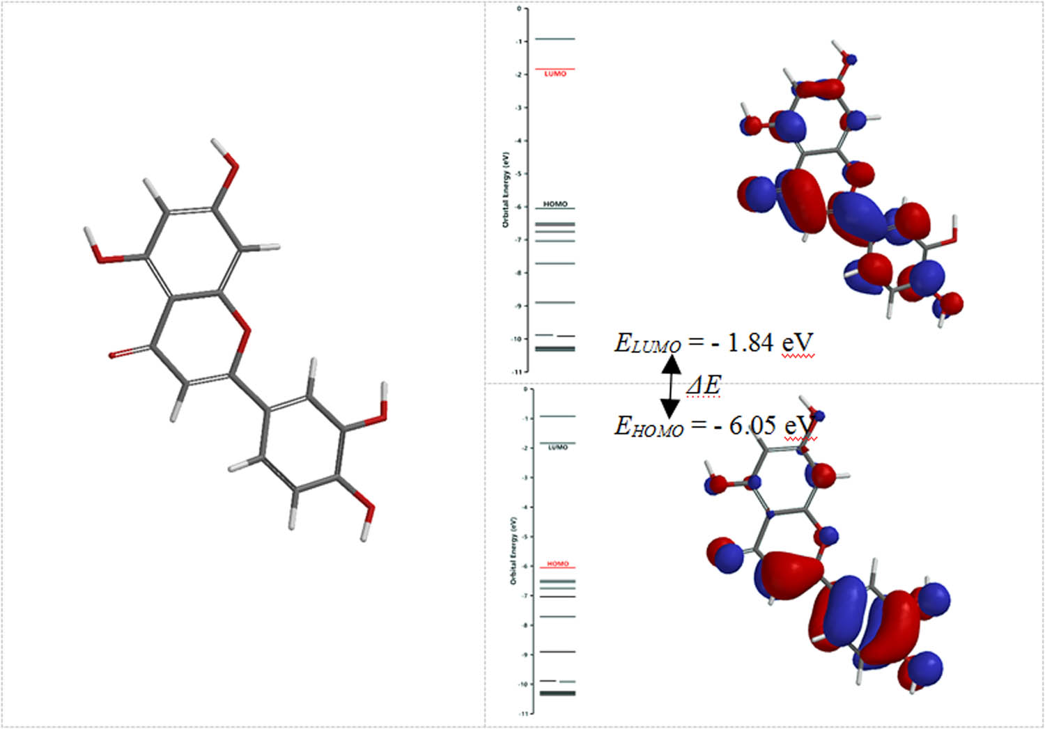 The localization of frontier molecular orbitals (FMOs) for LUTEOLIN: HOMO (the highest occupied molecular orbital) and LUMO (the lowest unoccupied molecular orbital).