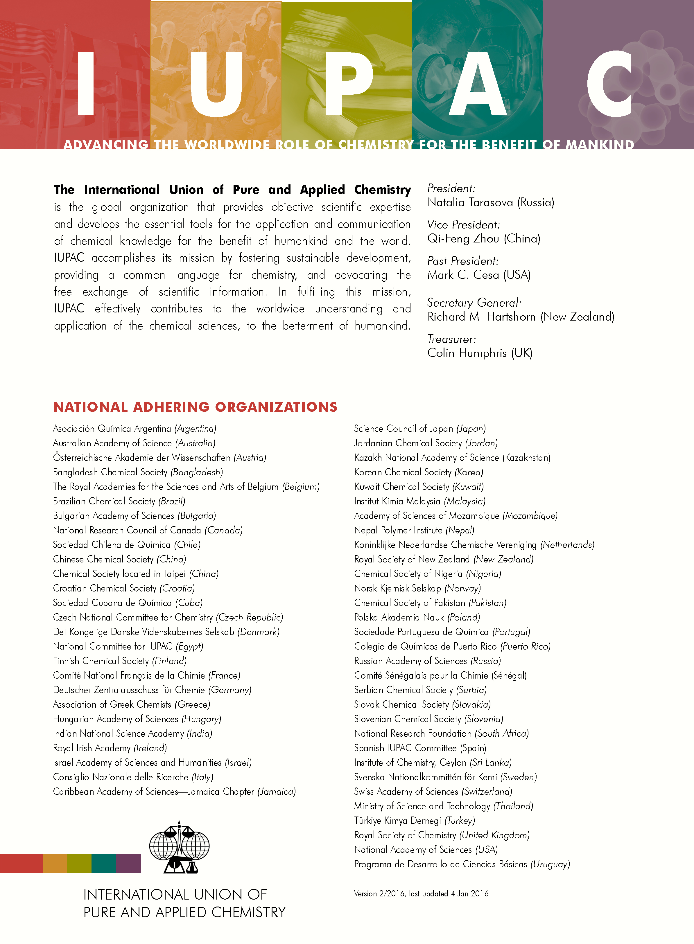 As indicated in the previous issue, beginning with this issue, Chemistry International will be published in print format only four times a year. However, and throughout the year, IUPAC members and CI subscribers will have access to new and updated content via Chemistry International: Digital First—a new electronic version that is currently in the early stages of development. The Digital First edition will provide a preview of what is new since the last print and what is being worked on for the next issue, including news, project updates, books and publications, conference updates, and feature articles - all of the CI sections with you are familiar with. Ultimately the print edition will be compiled every three months and thus will remain a sort of time capsule for reference. See iupac.org for updates.