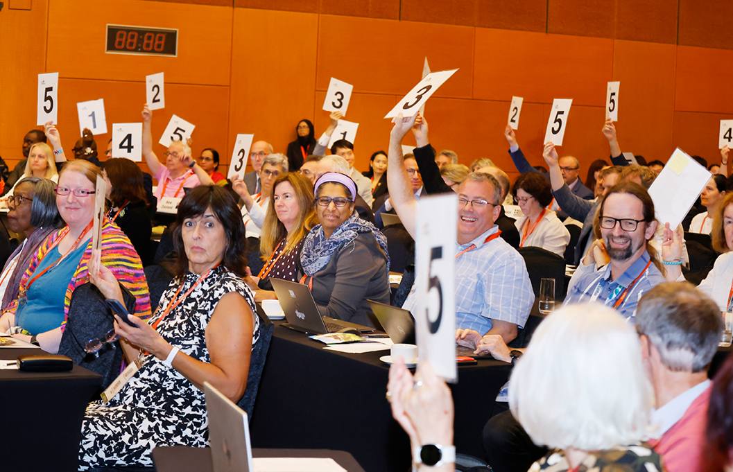 Delegates appointed by National Adhering Organizations (NAOs) vote at the council meeting.
