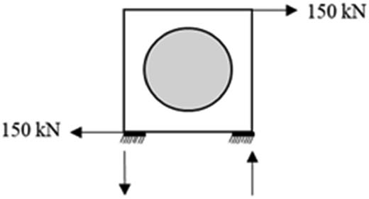 Clamped boundary conditions are applied at the bottom corners, and concentrated force is set at the top corners.