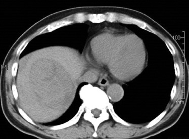 Case information: A 41-year-old man presented with a sudden onset severe upper abdominal pain for 3 hours that started 30 minutes after eating meats at riverside barbecue. He reported he had the similar abdominal pains usually after meals for a few years but no diagnosis has been made. Physical examination showed the flat and non-tender abdomen with normal bowel sounds.
