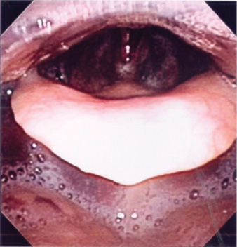 Case information: A 64-year-old man presented to our hospital with a 3-day history of painful swelling of the right ankle. A physician in the outpatient clinic saw him and prescribed amoxicillin/clavulanate for suspected cellulitis. Two days later, although the ankle swelling was improved, he developed sore throat, sputum and voice change and visited our hospital again. A diagnosis of pharyngitis was made by a second physician who placed the patient on a wait-and-see approach. However, on the following day, he visited our hospital for the third time. His past history included atrial fibrillation and cerebral infarction and regular medications were warfarin and aspirin.