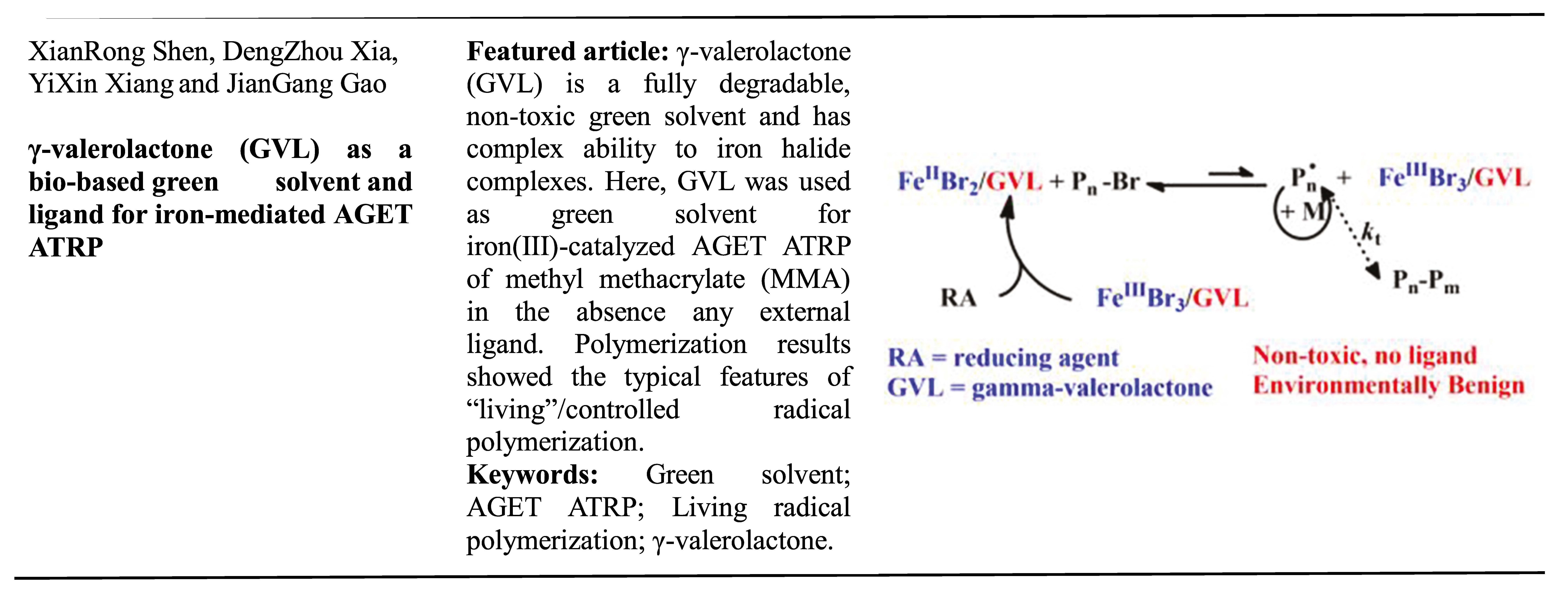 Home Physical Sciences γ-valerolactone (GVL) as a bio-based green solvent and ligand for iron-mediated AGET ATRP