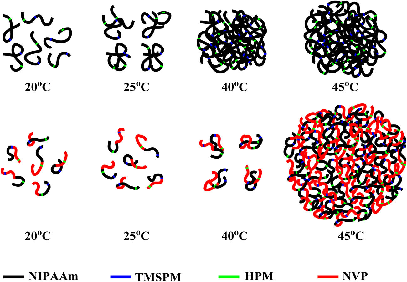 Schematic diagram for changes in the average hydrodynamic diameters of the PNTHV copolymers in DI water.