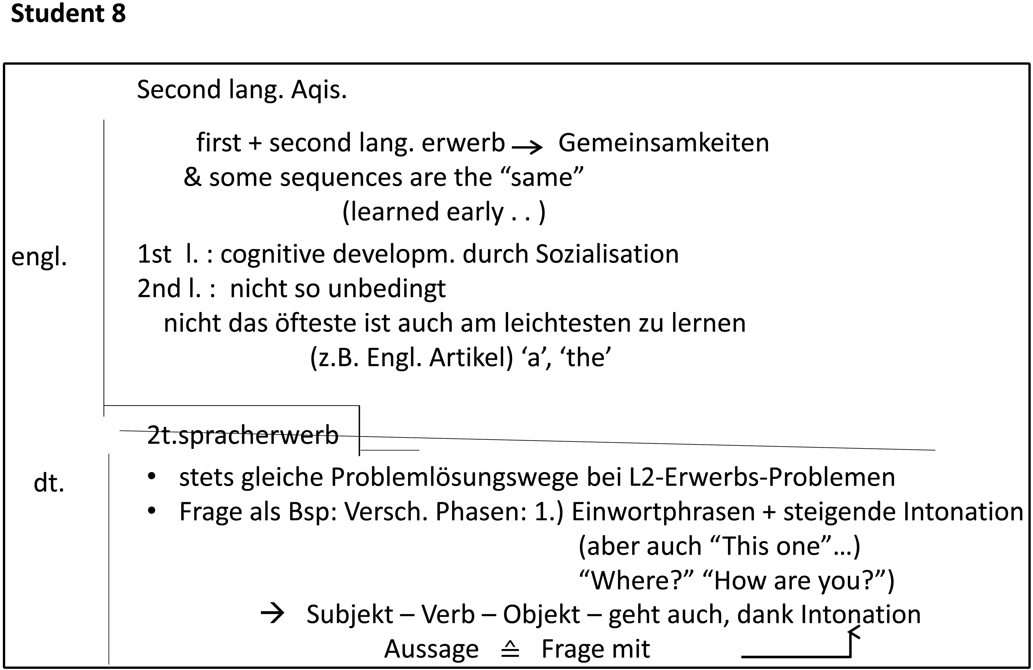 Wie sieht nun die Zweitsprachenentwicklung genauer aus? Konzentrieren wir uns dabei zunächst auf einen spezifischen Bereich der L2-Entwicklung, nämlich der Entwicklung von Fragen in der Lernersprache Englisch.