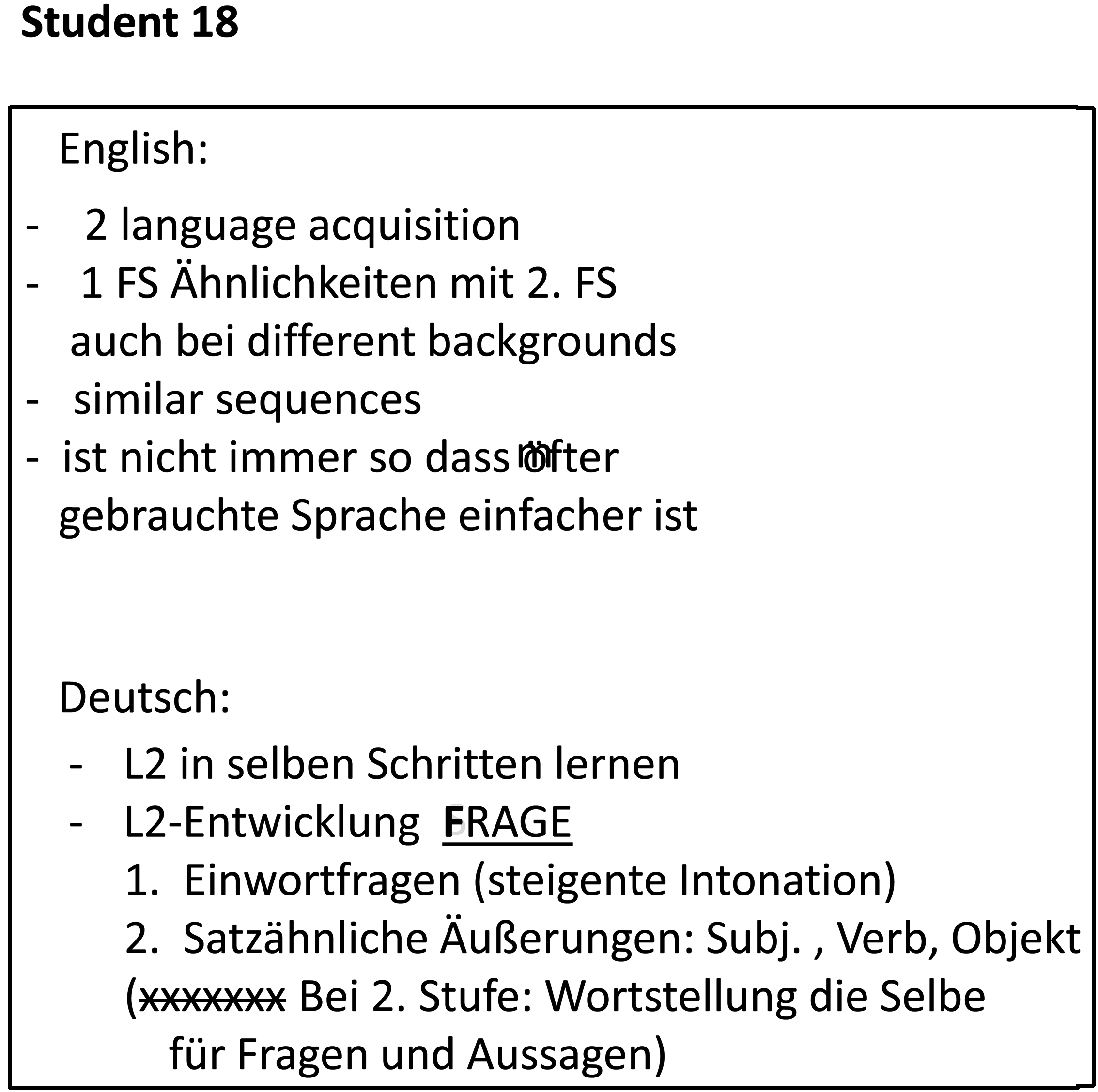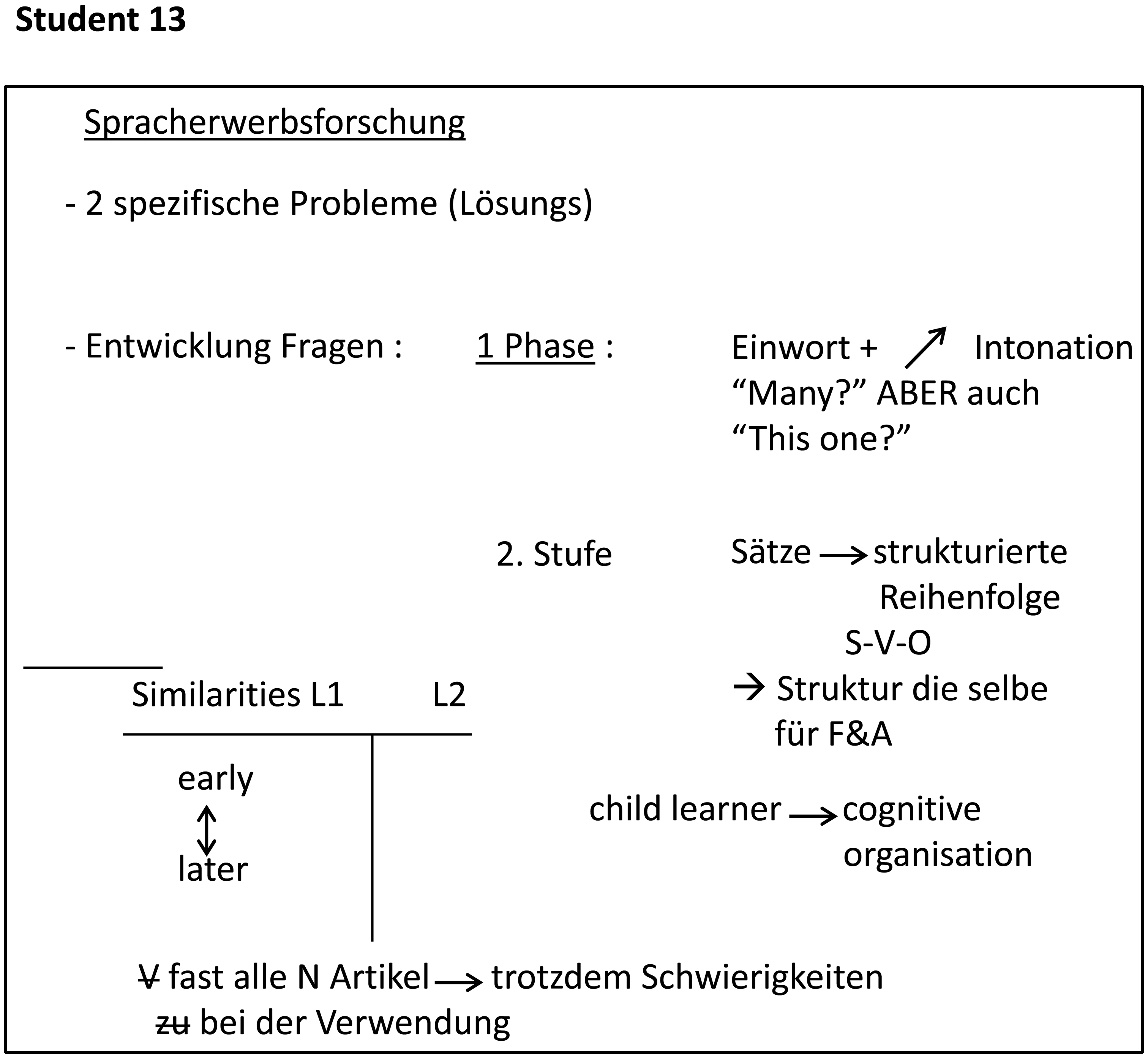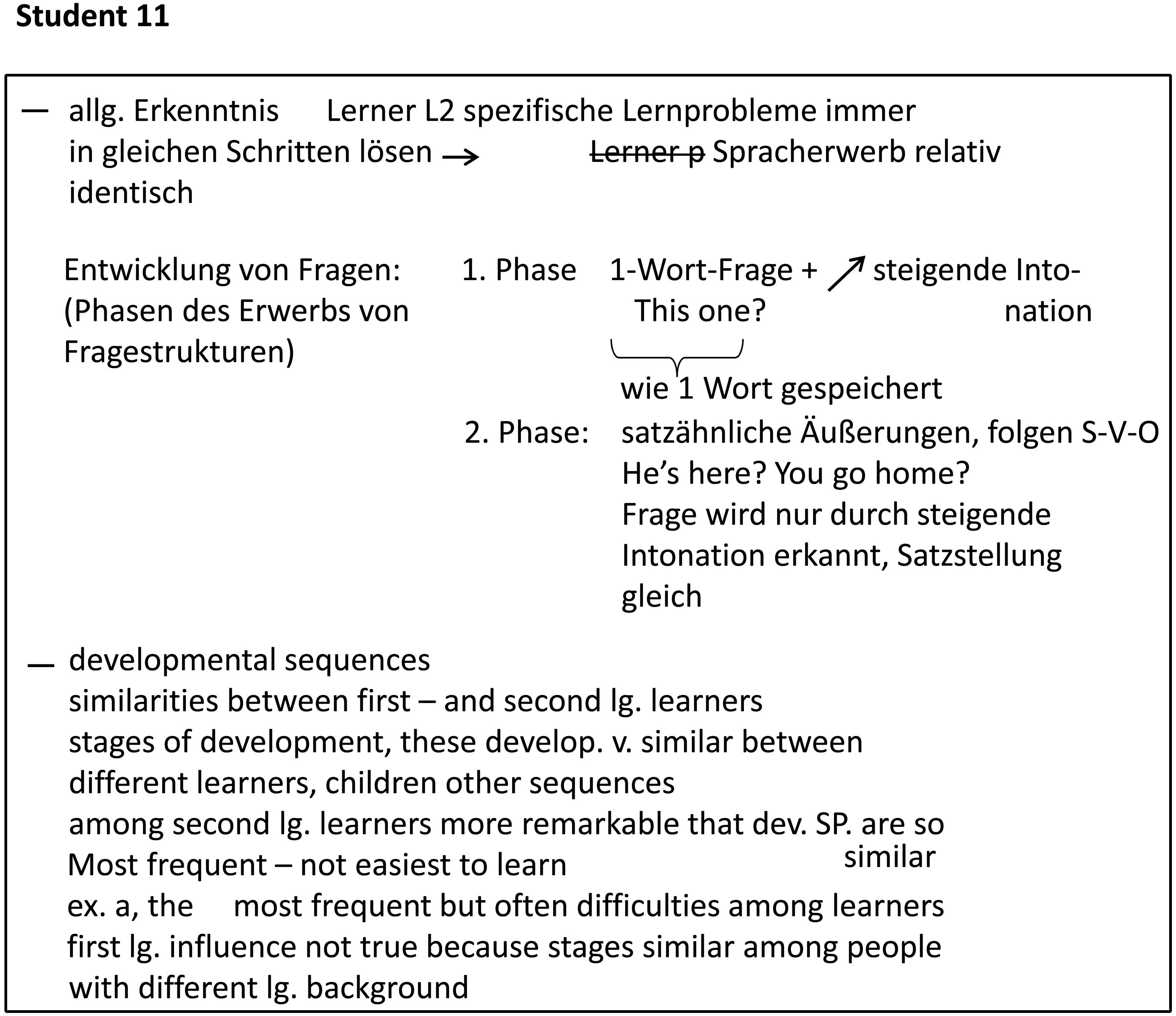 Eine allgemeine Erkenntnis der L2-Erwerbsforschung besteht darin, dass Lerner L2-spezifische sprachliche Lernprobleme stets in denselben Schritten lösen. Dies führt dazu, dass die sprachlichen Entwicklungsstadien einzelner Lerner erstaunlich ähnlich sind.