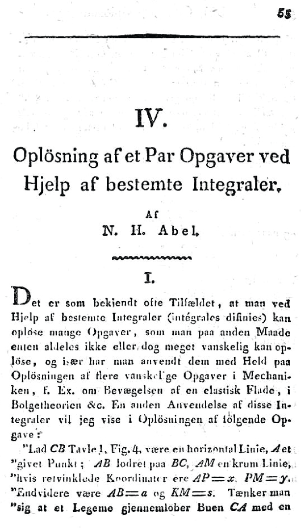 The picture on the right appeared in the French translation in [5]. For this problem Abel obtains the following equation: