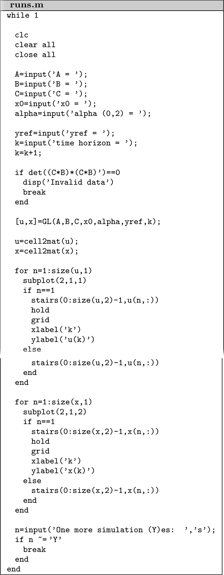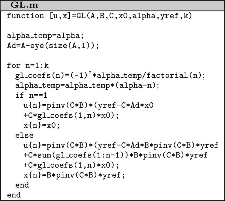 Program allowing to present the signal runs of truncated fractional-order perfect control is presented below.
