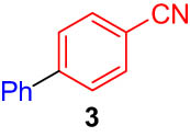 The following were added to a Schlenk tube capped by a septum: 4-iodobenzonitrile (1, 0.1 mmol), tri-n-butylphenylstannane (2, 1.5 eq), lithium chloride (3 eq), Pd@DualPore (2 mol%), and dimethylformamide (3 mL). The mixture was stirred at 120°C in an argon atmosphere for 18 h. The solution was mixed with aqueous ammonium chloride, n-hexane, ethyl acetate, and n-tridecane as internal standards. The organic phase was analyzed by GC to determine the yield of the desired product 3.