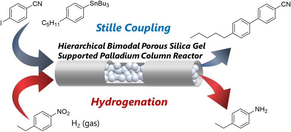 - Stille, Heck, and Sonogashira coupling and hydrogenation catalyzed by porous-silica-gel-supported palladium in batch and flow