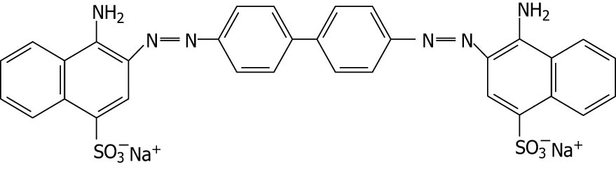Direct dyes: They belong to the class of azo dyes and dye the fabrics directly by placing them in an aqueous solution of the dye in a neutral environment. They are used to dye cellulose fibers without the use of a mordant in a variety of brilliant colors. Cotton, wool, paper, leather, silk, and nylon are all dyed using direct dyes. These form H-bond with fabrics. These are used to dye wool, silk, nylon, rayon, and cotton, e.g., Martius yellow and Congo red.