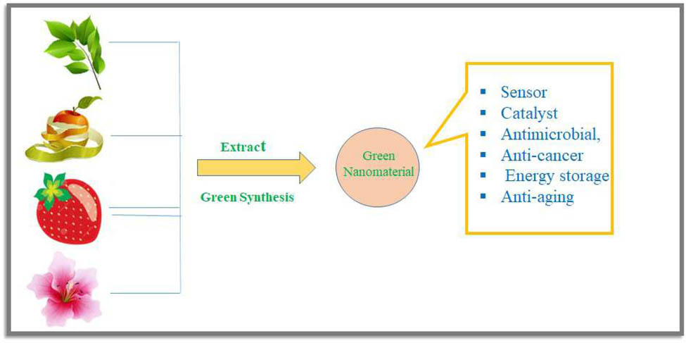 In the literature, presently various chemical and physical ways for developing nanomaterials, with higher rates of production and well-controlled size and shape of nanomaterials, but the demerits of the methods are higher loss of energy and funds, use of toxic materials, and large amounts of waste production. These main issues have an economic and environmental impact on nanomaterials’ economic levels’ scale-up process. Compared to traditional methods, the greener approach to nanomaterial production provides cost-effective, eco-friendly, and benign ways [9]. In recent years, there has been a growth in the adoption of greener protocols for manufacturing nanomaterials. These methods offer significant advantages, such as having eco-friendly procedures, being less expensive, and producing small-sized nanomaterial [10]. Various natural resources, including microorganisms, plant Leaves, and extracts, have previously been employed to produce nanoparticles [11,12]. This comprehensive review mainly exploring on recent advances in the green synthesis of nanomaterial from plant extracts and leaves.