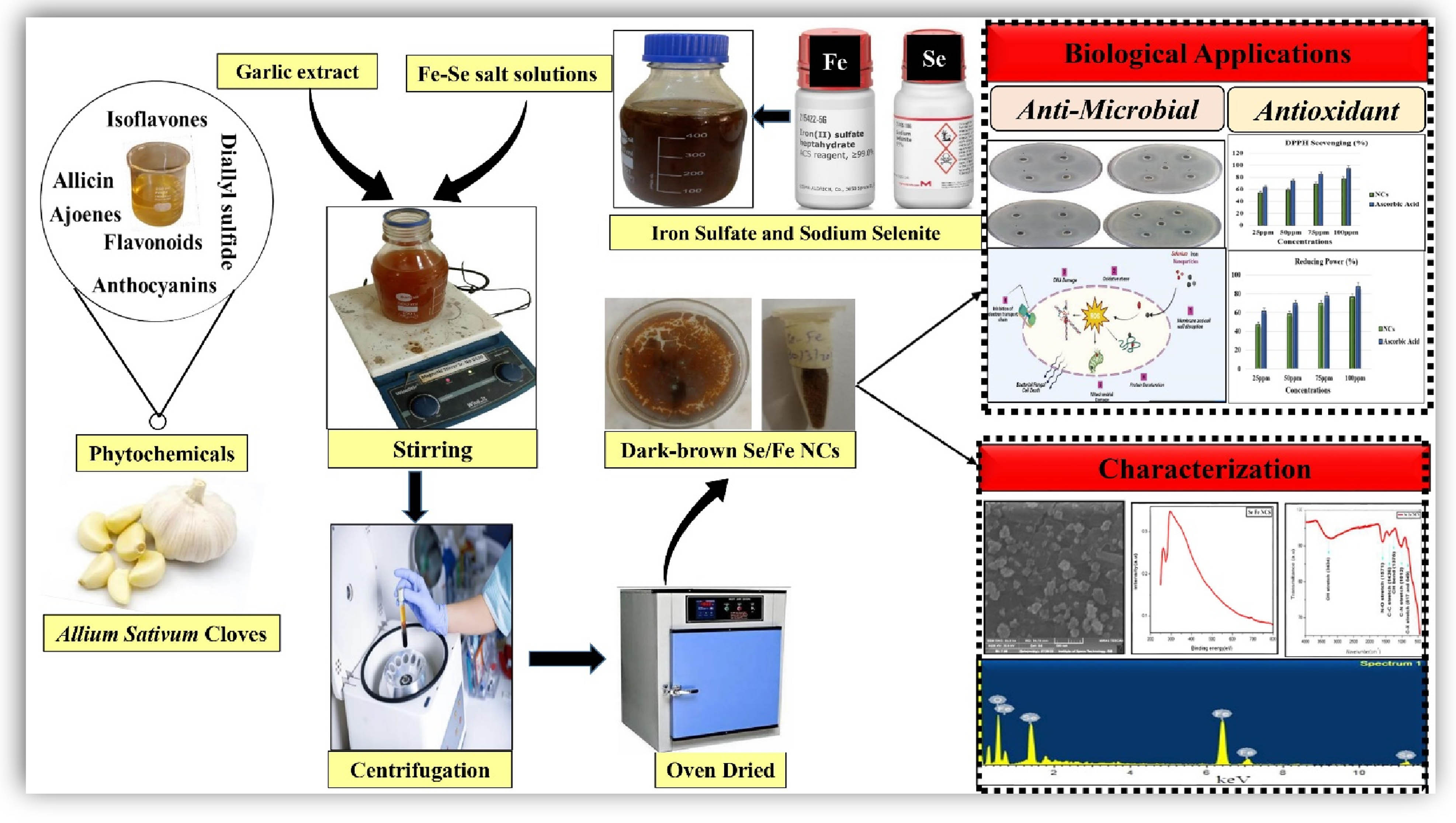 - Phytofabrication, characterization, and evaluation of novel bioinspired selenium–iron (Se–Fe) nanocomposites using Allium sativum extract for bio-potential applications