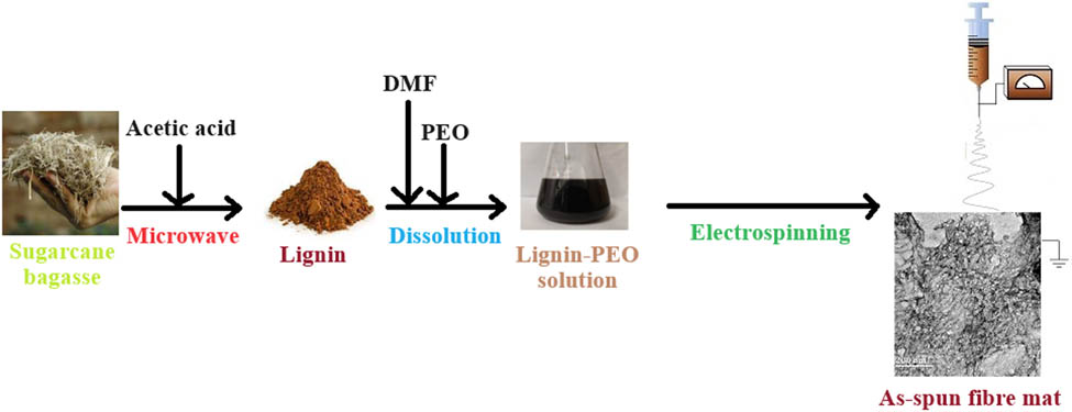 - Microwave-assisted extraction of acetosolv lignin from sugarcane bagasse and electrospinning of lignin/PEO nanofibres for carbon fibre production