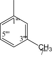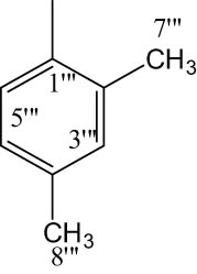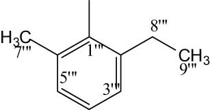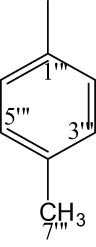 Light pink solid; yield: 83%; m.p.: 162–164°C; HRMS: [M]•+ 530.6618 (calcd for C25H30N4O5S2; 530.6629); Anal. Calcd for C25H30N4O5S2:C, 56.58; H, 5.70; N, 10.56; O, 15.08; S, 12.08; found C, 56.52; H, 5.64; N, 10.50; O, 15.03; S, 12.02; IR (KBr, υ max, cm−1): 3,359 (N–H), 3,074 (C–H stretching of aromatic ring), 1,674 (C═N stretching), 1,667 (C═O), 1,593 (Ar C═C), 1,439 (S═O), 1,072 (C–N), 611 (C–S); 1H-NMR (600 MHz, CDCl3,δ/ppm): 7.72 (d, J = 8.8 Hz, 2H, H-6″ and H-2″), 7.53 (d, J = 8.0 Hz, 1H, H-6‴), 7.17 (t, J = 8.2 Hz, 1H, H-5‴), 7.03 (d, J = 7.7 Hz, 1H, H-4‴), 7.02 (d, J = 8.9 Hz, 2H, H-3″ and H-5″), 3.89 (s, 3H, H-7″), 3.96–3.94 (m, 1H, He-2′), 3.67–3.65 (m, 1H, Ha-2′), 3.64 (q, J = 6.8 Hz, 2H, H-2″″), 3.14–3.11 (m, 1H, H-3′), 2.67–2.63 (m, 1H, He-6′), 2.48–2.44 (m, 1H, Ha-6′), 2.35 (s, 3H, H-8‴), 2.26 (s, 3H, H-7‴), 2.14–2.13 (m, 1H, Ha-5′), 1.93–1.89 (m, 1H, Ha-4′), 1.79–1.72 (m, 1H, He-5′), 1.65–1.59 (m, 1H, He-4′), 1.42 (d, J = 6.8 Hz, 3H, H-3″″); 13C-NMR (150 MHz, CDCl3, δ/ppm): 163.15 (C-1″″), 160.38 (C-5, heterocyclic), 160.89 (C-2, heterocyclic), 160.31 (C-4″, aromatic), 137.87 (C-1‴, aromatic), 135.08 (C-3‴, aromatic), 132.57 (C-1″, aromatic), 129.74 (C-2″ and C-6″, aromatic), 127.58 (C-2‴, aromatic), 126.83 (C-4‴, aromatic), 126.38 (C-5‴, aromatic), 118.75 (C-6‴, aromatic), 114.37 (C-3″ and C-5″, aromatic), 55.64 (C-7″, aromatic), 48.45 (C-2′, aliphatic, heterocyclic), 46.25 (C-6′, aliphatic, heterocyclic), 33.56 (C-2″″, amidic), 30.92 (C-4′, aliphatic, heterocyclic), 27.12 (C-3′, aliphatic, heterocyclic), 23.72 (C-5′, aliphatic, heterocyclic), 20.63 (C-8‴, aliphatic), 18.42 (C-3″″, amidic), 13.65 (C-7‴, aliphatic).