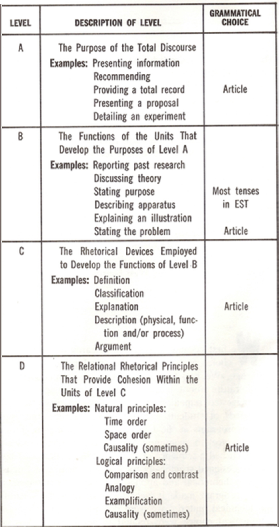 Lackstrom, John, Larry Selinker & Louis Trimble. 1973. Technical rhetorical principles and grammatical choice. TESOL Quarterly 7(2). 127–136.10.2307/3585556Search in Google Scholar