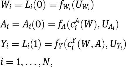 The estimation problem defined in the next section in terms of a semi-parametric structural equation model corresponds with the following counterfactual missing data problem formulation also called the Neyman–Rubin causal model [1, 42–46].