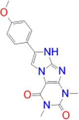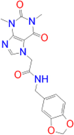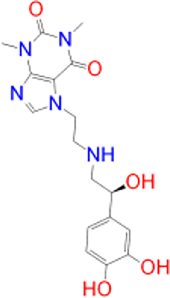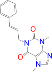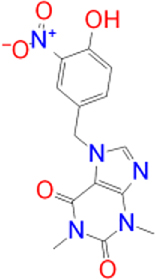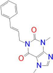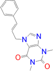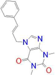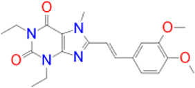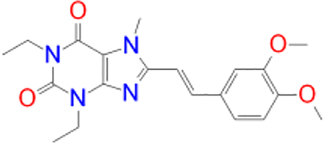 | Istradefylline |   | −9.3 | FAD-1502 | TYR-60, PRO-102, TYR-326, MET-341, LEU-328, GLN-206, ILE-199, TYR-398, TYR-435 |
