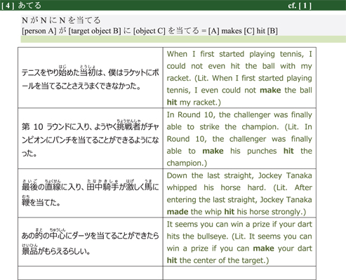 Tanaka, Daiki, J.-R. Hayashishita & Ayumi Ueyama. 2017. Tadashiku Tsukaeru Tame no Nihongo Dōshi Gakushū Jiten no Sakusei ni Mukete [Towards the creation of a viable Japanese verbs reference book]. Research Bulletin of Naruto University of Education 32. 333–347. Naruto University of Education.Suche in Google Scholar