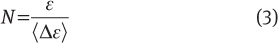 For a power law distribution of exponent 3/2, the average is the arithmetic mean of the upper and lower cut-offs of the power law scaling regime. Hence, the average strain increment is