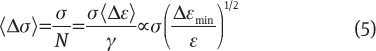 The analysis of flow stresses for the Mo experiments indicates that σ∼d-1/2. Furthermore, Δεmin∼d-1 due to the manner the stress-strain curves were analysed [2]. Inserting both relations into Eq. (5), we find that <Δσ>∼d-1 as observed. Thus, the observed size dependences of the stress and stress increment statistics are mutually consistent within the framework of our minimal statistical model.