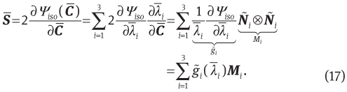 where λ̅i is the principal stretch of the isochoric part of the right Cauchy-Green strain tensor. Derivation of the fictitious stress tensor can be obtained as